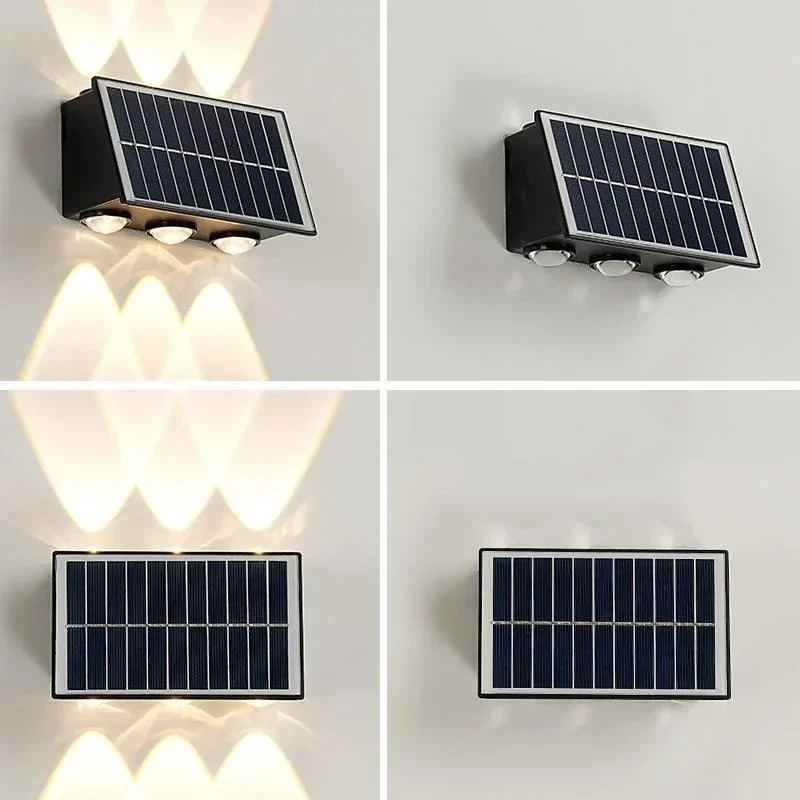 The solar wall light has 4/6/8 higher brightness led beads above and below, provides both upwards and downwards warm lighting. Is evenly distributed up and down, casting a beautiful arc, so that the monotonous wall is effectively decorated. The lights fixture magnified with reflector lenses to concentrate the light, increase the lamp's brightness.